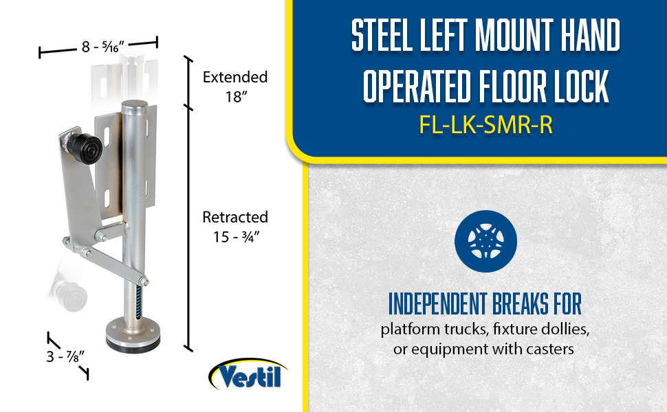 | Stainless Steel Right Mount Hand Operated Floor Lock 10 to 12 In. Height Silver | Mounting Height (in.): 10 to 13-7/8 Retracted Height on Bottom Mounting Hole (in.): 10 | 9 |