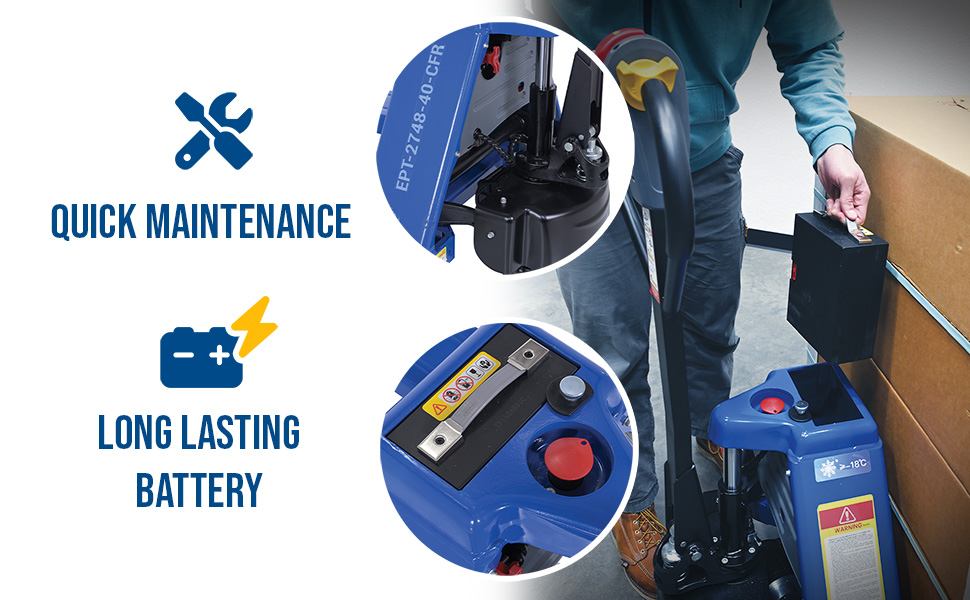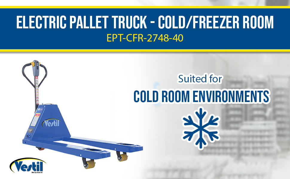 EPT-CFR-2748-40 EPT-CFR-2748-40Steel Electric Pallet Truck Cold Freezer Room 63-7/8 In. x 27 In. x 46 In. 4000 Lb. Capacity BlueUniform Capacity (Lbs.): 4,000
