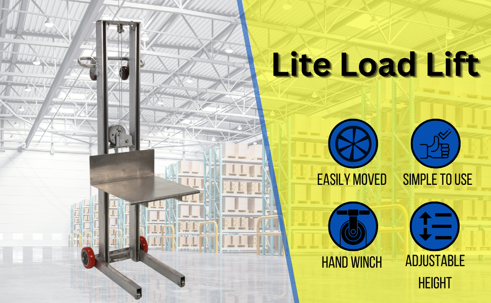 LLW-202058-FWWL LLW-202058-FWWLSteel Lite Load Lift With Winch, Fixed Wheels and Wheel Lock 20 In. x 20 In. Platform 400 Lb. Capacity BlueUniform Capacity (lb.): 400
