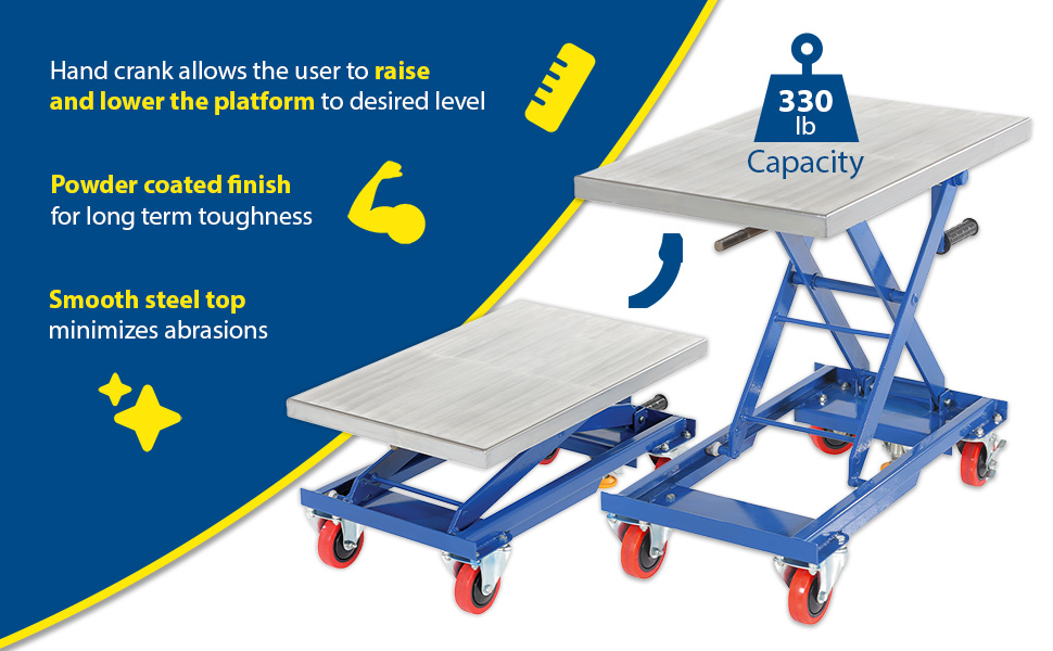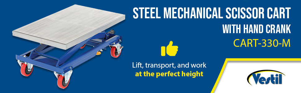 CART-330-M CART-330-MSteel Mechanical Scissor Cart with Hand Crank 18 In. x 28 In. 330 Lb. Capacity Blue/SilverUniform Capacity (lb.): 330