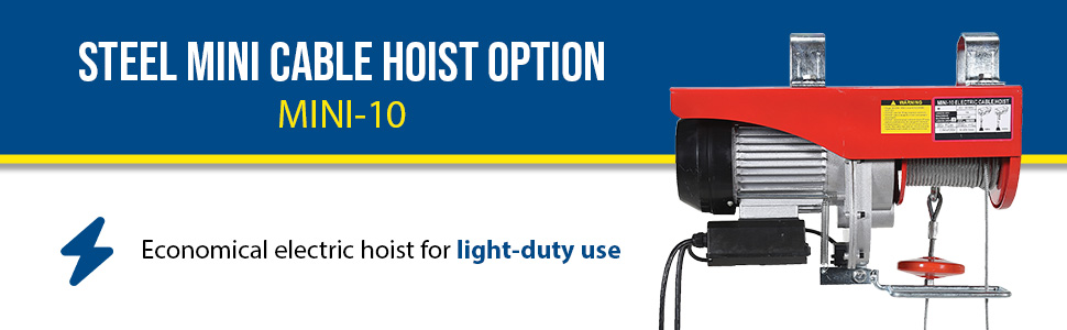 MINI-10 MINI-10Steel Mini Cable Hoist Option 19-1/4 In. x 8 In. x 11-3/4 In. 1000 Lb. Capacity RedSingle-Line Uniform Capacity (lb.): 1000