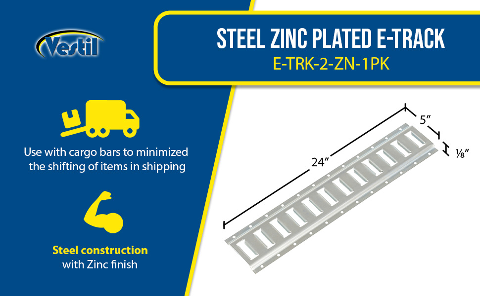 The E-track is a great benefit to shipping and cargo loads. With a steel construction the track allows additional bars to become attached to it. Once, the additional bars are in place the shifting of items becomes minimized. The track design lets the user choose from an array of ports for precise placement. E-TRACK Cargo Bar Assist Tool also available.