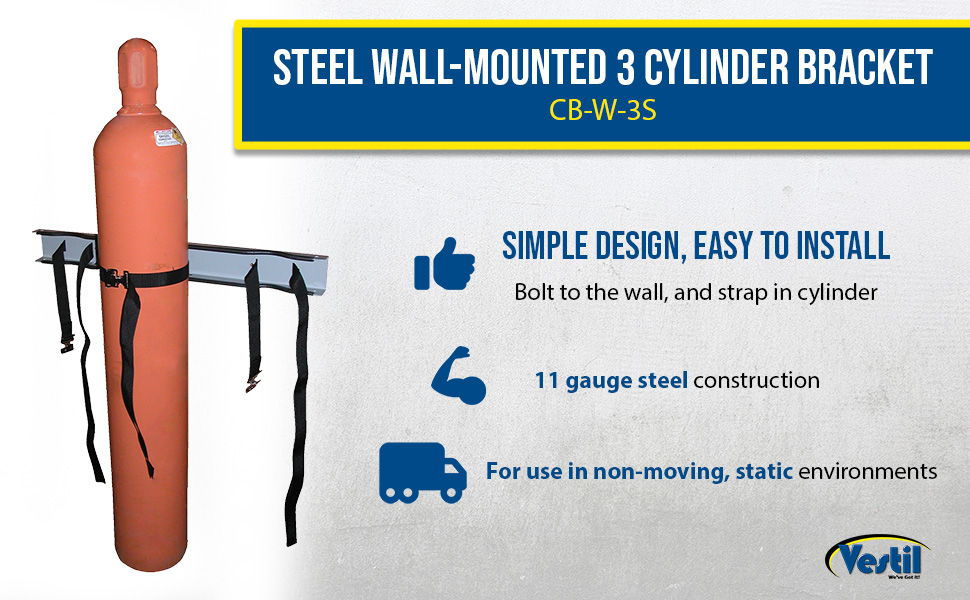 CB-W-3S CB-W-3SSteel Wall-Mounted 3 Cylinder BracketMaximum Cylinder Diameter (in.): 12