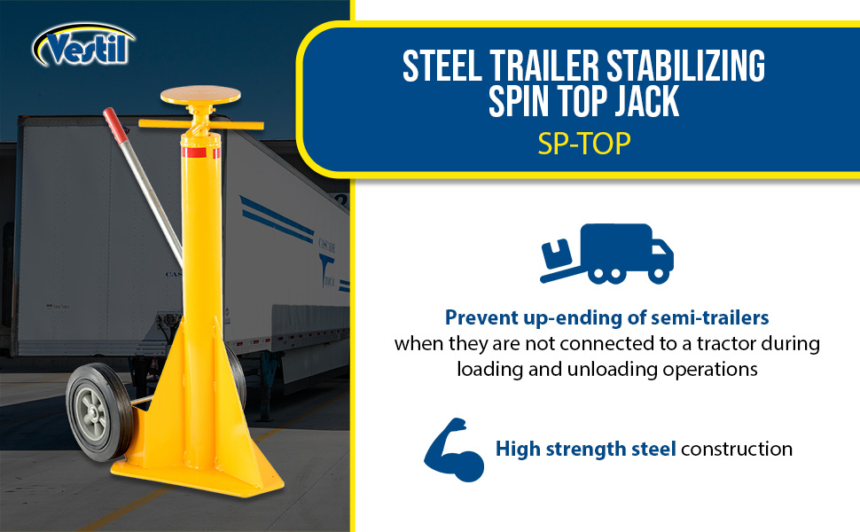 SP-TOP-R-100 SP-TOP-R-100Steel Trailer Stabilizing Spin Top Ratchet Jack 27-1/4 In. x 17-5/8 In. x 39 In. 100,000 Lb. Static Capacity YellowUniform Static Capacity (lb.): 100,000