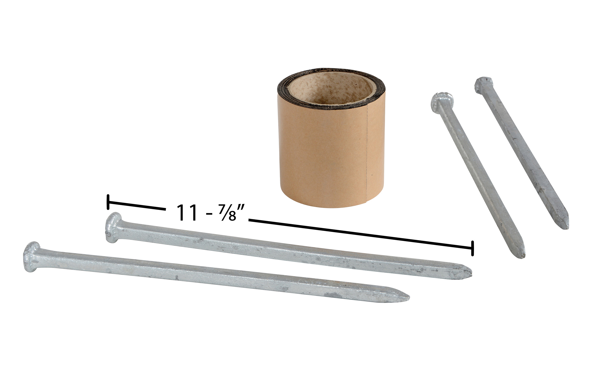 Car stop asphalt Hardware Kit with 1 roll of butyl tape and 4 spikes.