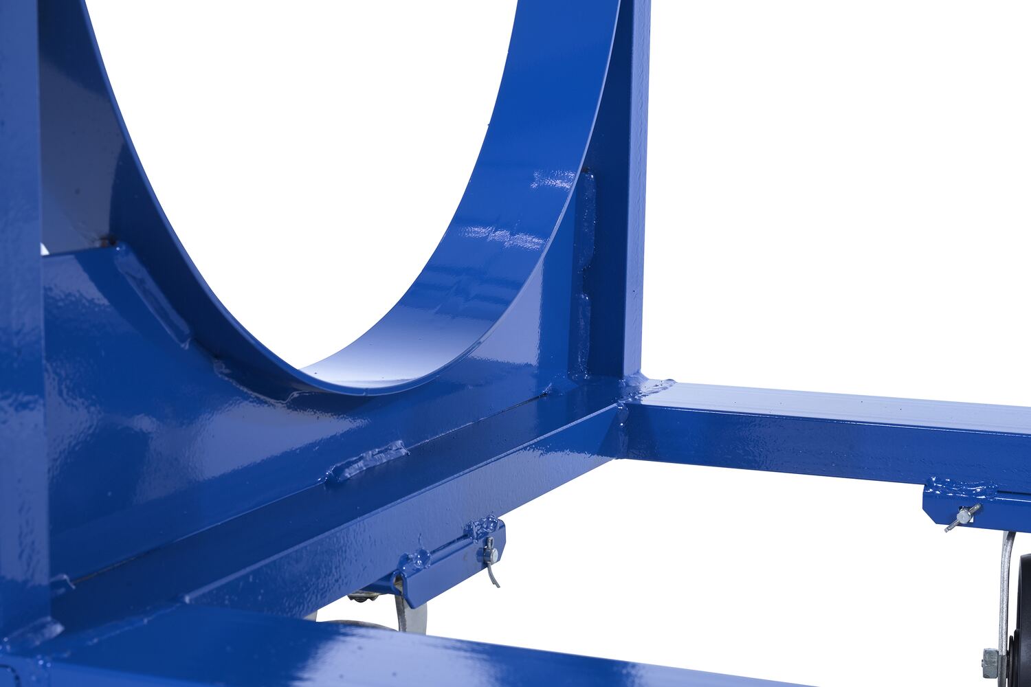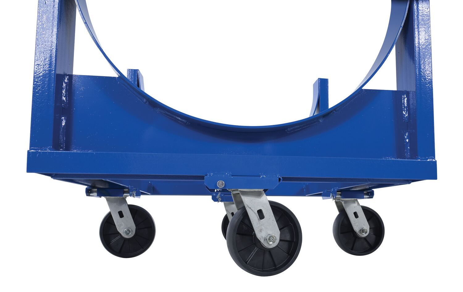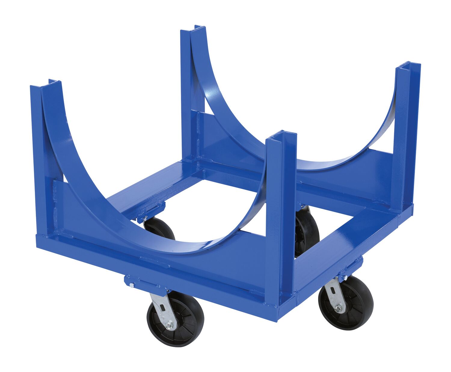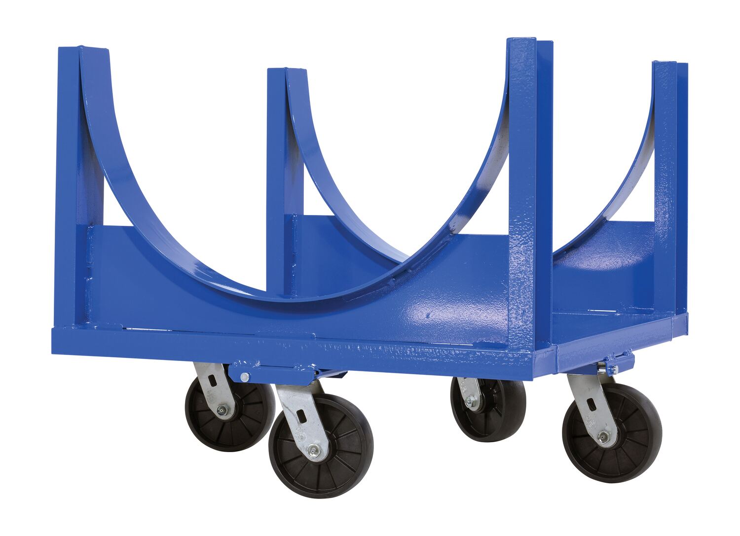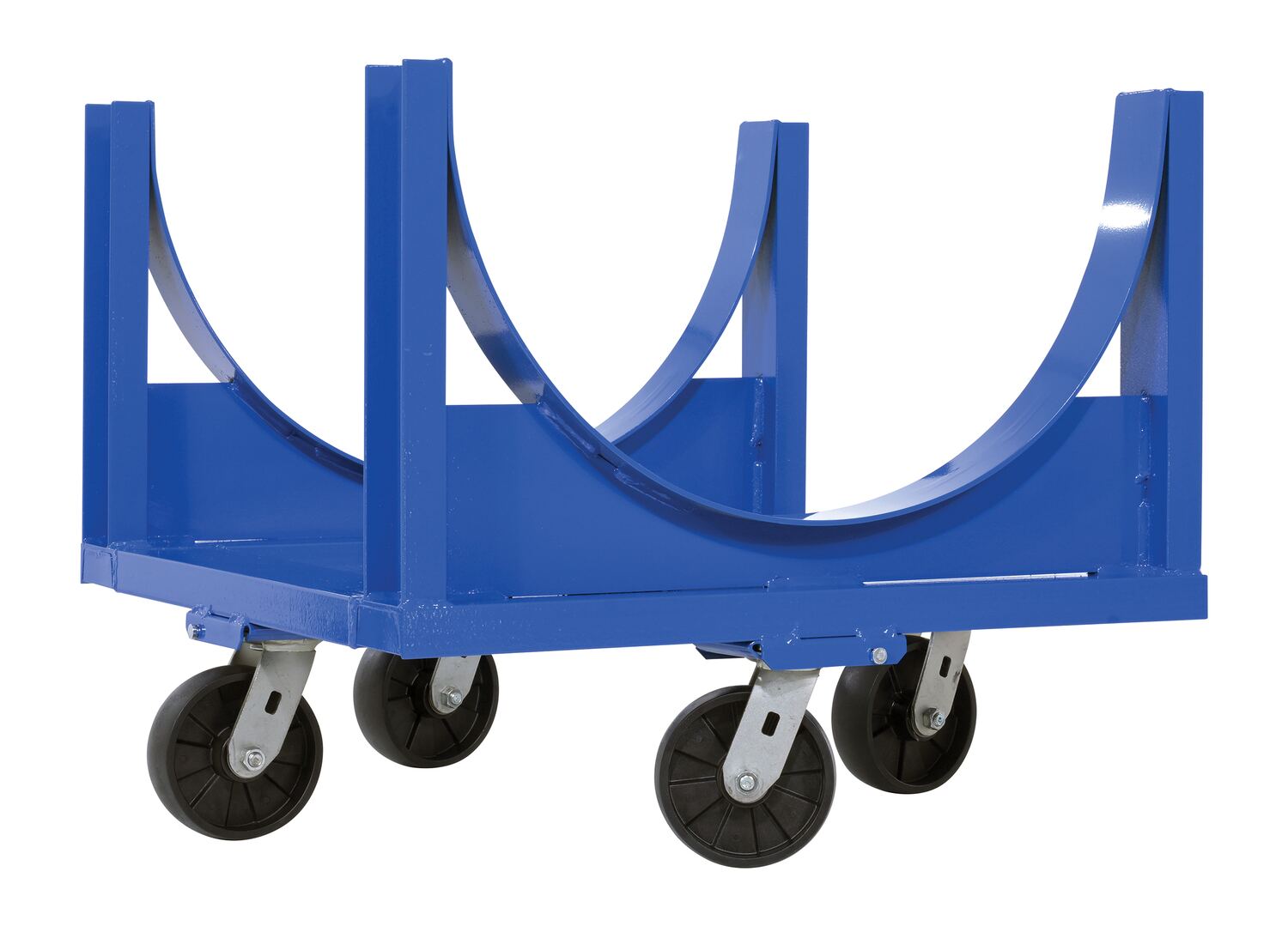Steel Heavy Duty Cradle 30-11/16 In. x 30-3/8 In. x 25-5/8 In. 4000 Lb. Capacity BlueMove and store pipe, channel, bar stock, barrels, or drums with this Heavy Duty cradle cart. A large open design that makes loading and unloading by fork trucks and slings easy. All welded construction. Wheels are mounted in a diamond pattern to allow the truck to tilt when going over thresholds and turn about on its own center. Lightweight Aluminum cradle cart fits all small to medium loads. Powder coat finish standard on steel cart.