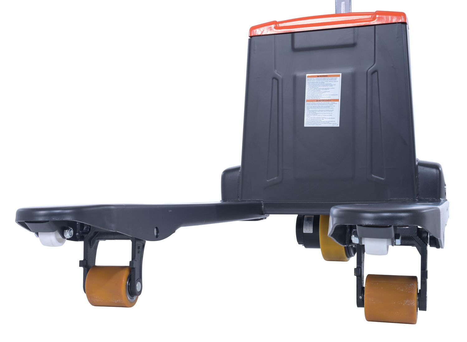 Steel Electric Pallet Truck With Powered Brakes 27 In. x 45 In. 3,300 Lb. Capacity Black/RedThe electric pallet truck is the perfect change from the manual design. This construction design is built to last, withstand rugged daily use, and diminish manual labor. Multi-function capabilities such as the raise and lower buttons and emergency brake are located in the handle. The design of the handle is also ergonomically friendly, minimizing awkward slouching when maneuvering. All areas are easily accessible for general upkeep and cleaning. Truck can be used with the handle in the upright position for utilization in the small areas. Horn is also included. This model includes powered brakes, which lessens strain on workers and increases workplace safety.