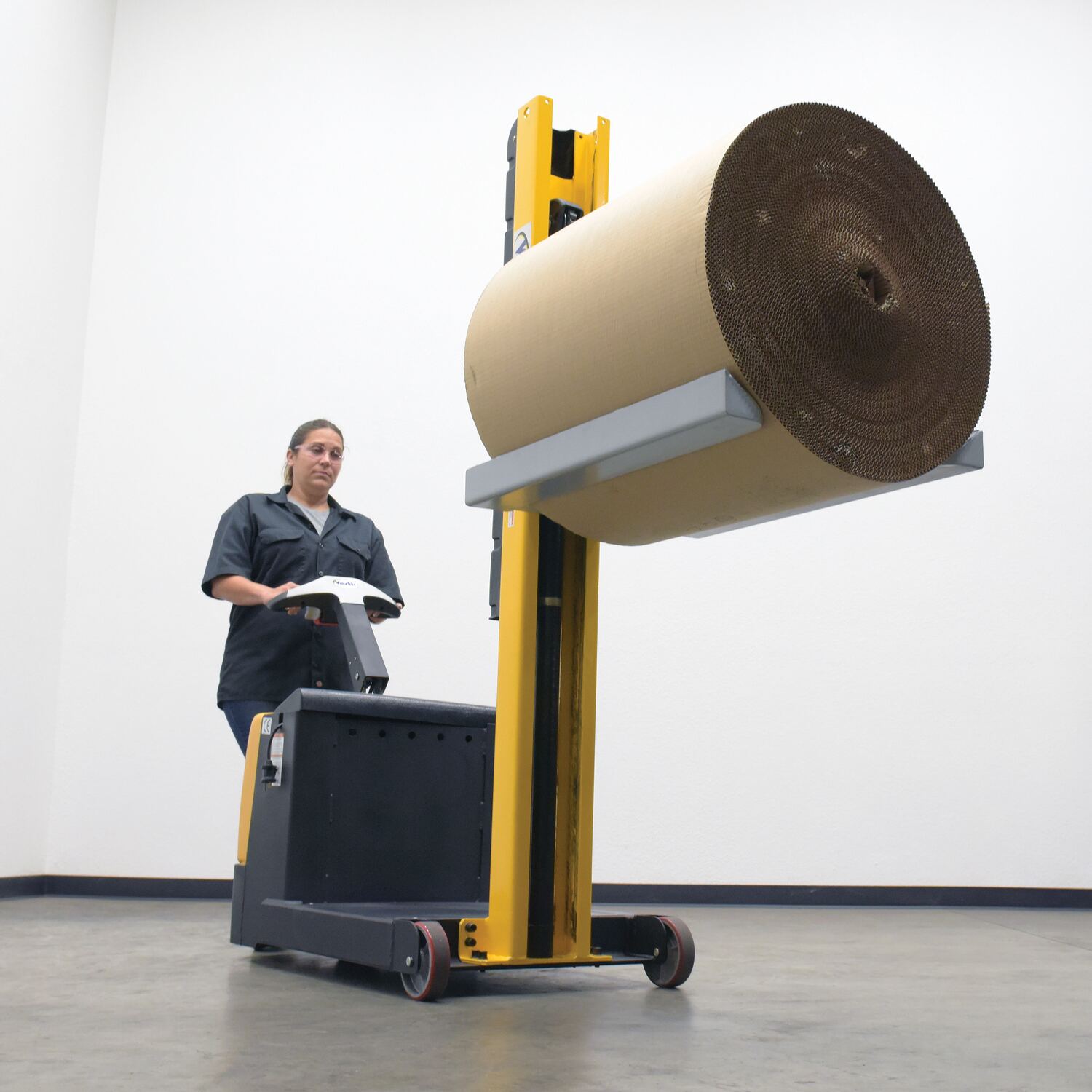 Large rolls can be difficult to maneuver and lift, but with the roll lifter stacker attachment that chore just became a joy! The forks on this attachment are fixed, so there is no hassle of adjusting the fork span before or between loads. With a unique design, the roll sits in a cradle like support system which keeps the roll secure during transport.
