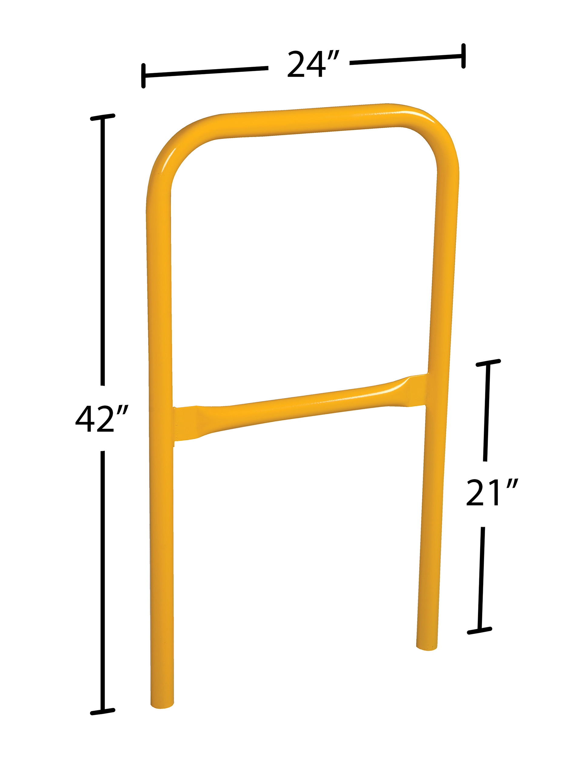 Steel Safety Railing 2 Ft. Length YellowThe pipe safety railing is a great addition to pathways and dock areas. The yellow colored finish allows for visibility of the handrail to create a more secure environment. With a variety of mounting options the unit can be permanently installed or removed after every use. When in place, the handrail creates an ergonomic position while gaining personal stability. VDKR series safety rail complies with U.S. occupational safety and health administration (OSHA) general industry requirements for guardrail systems in 29 CFR 1910.29.